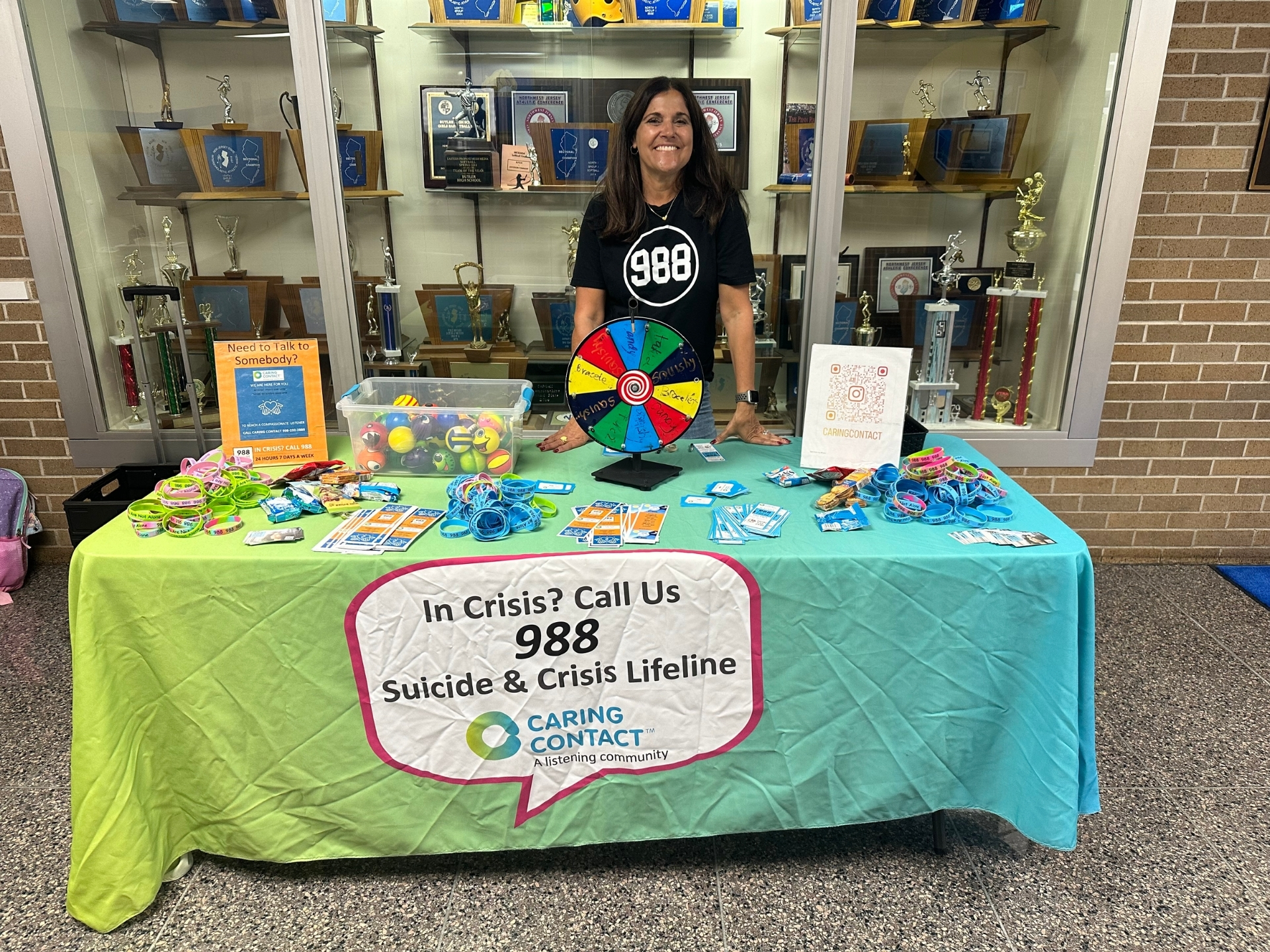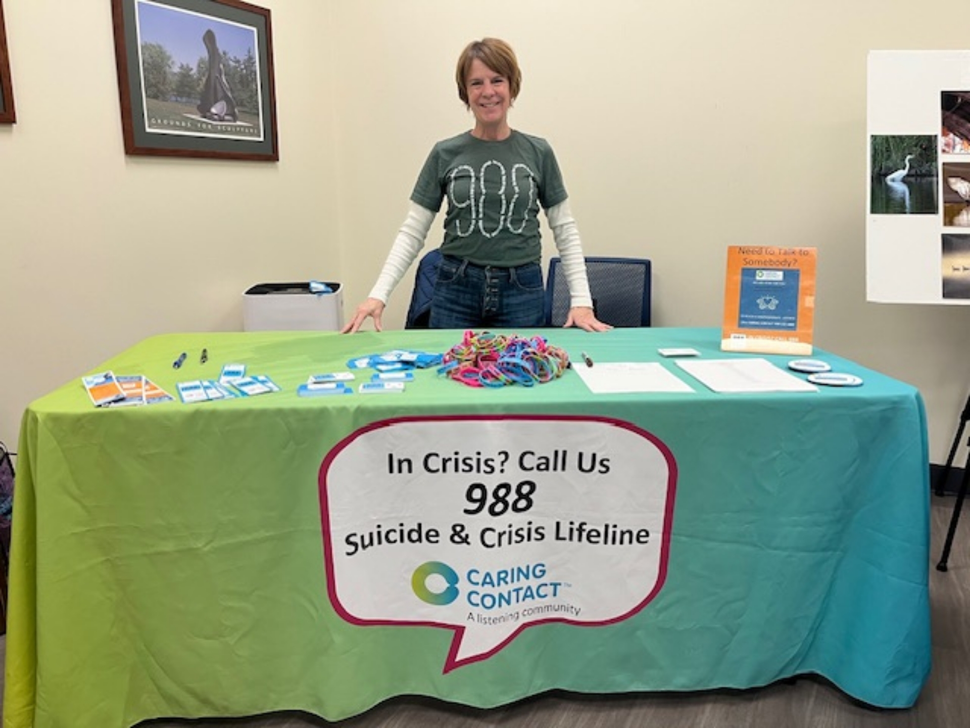 Tabling event with a Caring Contact representative to learn how our caring and crisis hotline supports emotional wellness in the community. Discover our services and volunteer opportunities, including training programs for those interested in compassionate listening and 988 support. Take home 988 bracelets, stickers, bookmarks, and other materials to help spread awareness.